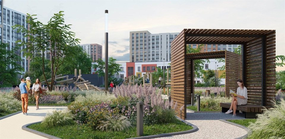 Для детских игр и отдыха взрослых в квартале предусмотрено множество вариантов уютных московских двориков. У каждого свой характер и свое имя, которое он получил в честь того или иного дерева. Здесь есть «Акациевый», «Кленовый», «Сосновый» и другие дворы. Изображения одноименных деревьев украшают интерьеры входных групп, выходящих в эти дворы. Дворы обустроены с заботой о каждом жителе квартала. Детские зоны отделены от взрослых, спортивные площадки и зоны воркаута с их шумными играми вынесены за пределы дворов. В обустройстве всех зон использованы только экологичные материалы. Оборудование для игровых площадок разрабатывалось с привлечением детских психологов.